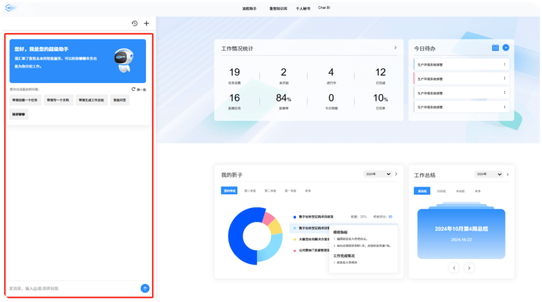 针对分歧部分营业打制定制化帮手,如“决策流程帮手”和“资产办理帮手”,精准响应特定营业征询取流程需求。做为嵌入式帮手,集成于工做台,具备企图识别能力,可联动学问库取AI东西,供给问答、使命建立、文档撰写等日常支撑。